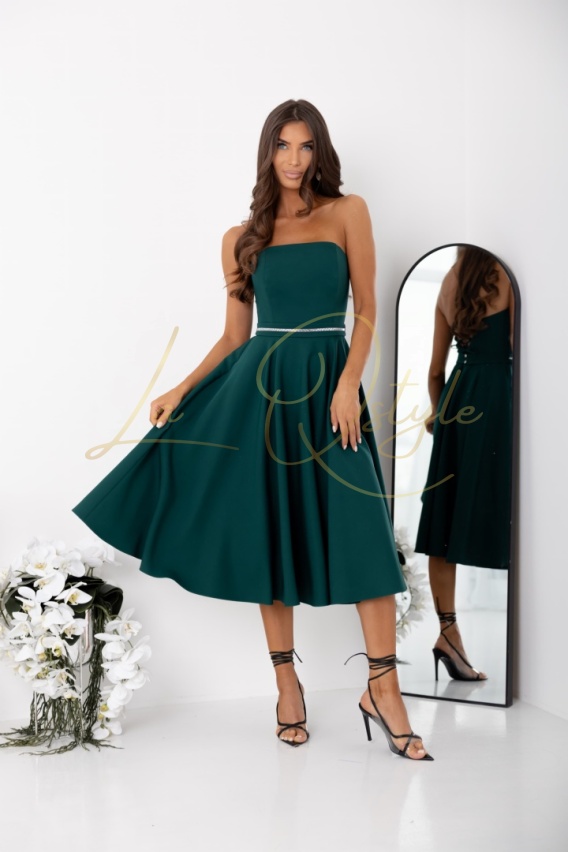 AURELIA gorsetowa sukienka midi z wiązaniem na plecach i paskiem BUTELKOWA ZIELEŃ