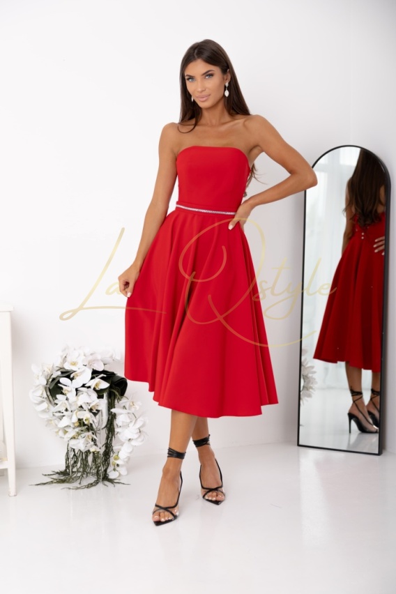 AURELIA gorsetowa sukienka midi z wiązaniem na plecach i paskiem CZERWONA