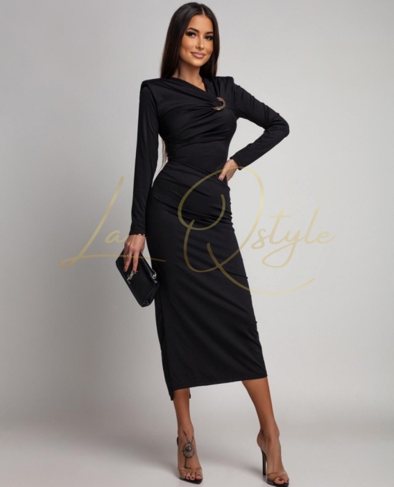 NOUR klasyczna sukienka midi z długim rękawem CZARNA