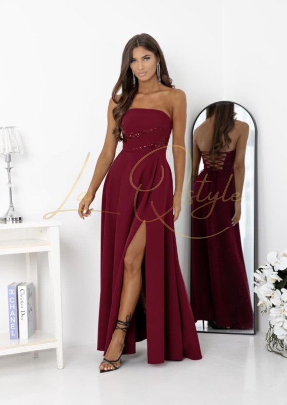 ROSSANA maxi sukienka z wiązaniem na plecach i ozdobnym gorsetem BORDOWA