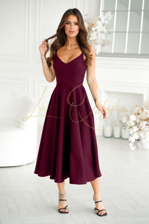 ROZALIA sukienka midi na ramiączkach BORDOWA